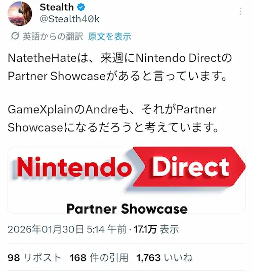 つまり来週はパートナーショーケースで、再来週に本ちゃんダイレクトってことでしょ?