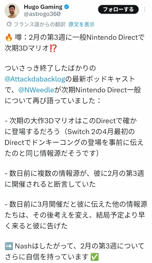ソフトメーカーダイレクトリークの時に2月3週目に本編ダイレクトがあるってリークすでにあったぞ