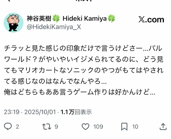 ソニックというかSEGAは別にマリオや任天堂を故意に煽ったりしないけどパルワは開発会社が任天堂どころかインディーゲーム作ってるところとか方々に迷惑かけてるからな。