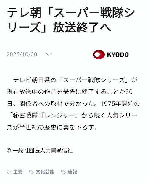 ゲームの話になると仮面ライダーはまだデータカードダスまだあるけど戦隊のダイスオーだっけ?も何年か前にサービス終了しててそれ以降ゲームも出なくなってたしいつかはこうなる予兆はあったんだろう