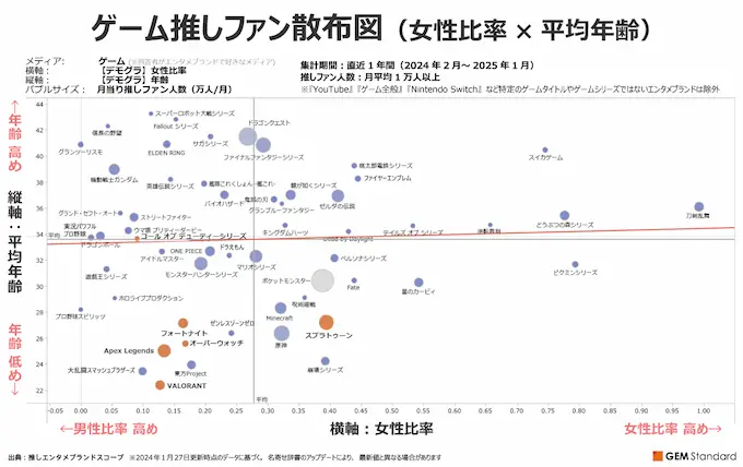 「年齢高め」と「男性比率高め」の領域は見事に任天堂作品が無いな