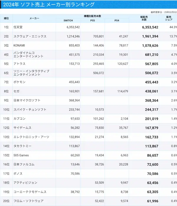 他だとキャメロット、グレッゾ、トーセは任天堂とも密だけど、他の案件も受けまくってるから組むかと言われると微妙。