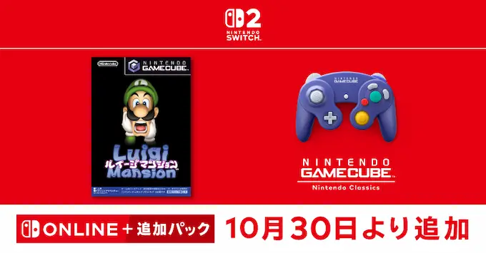 「Nintendo Switch Online + 追加パック」に加入で遊ぶことができる「ニンテンドー ゲームキューブ Nintendo Classics」に『ルイージマンション』が10月30日に配信。