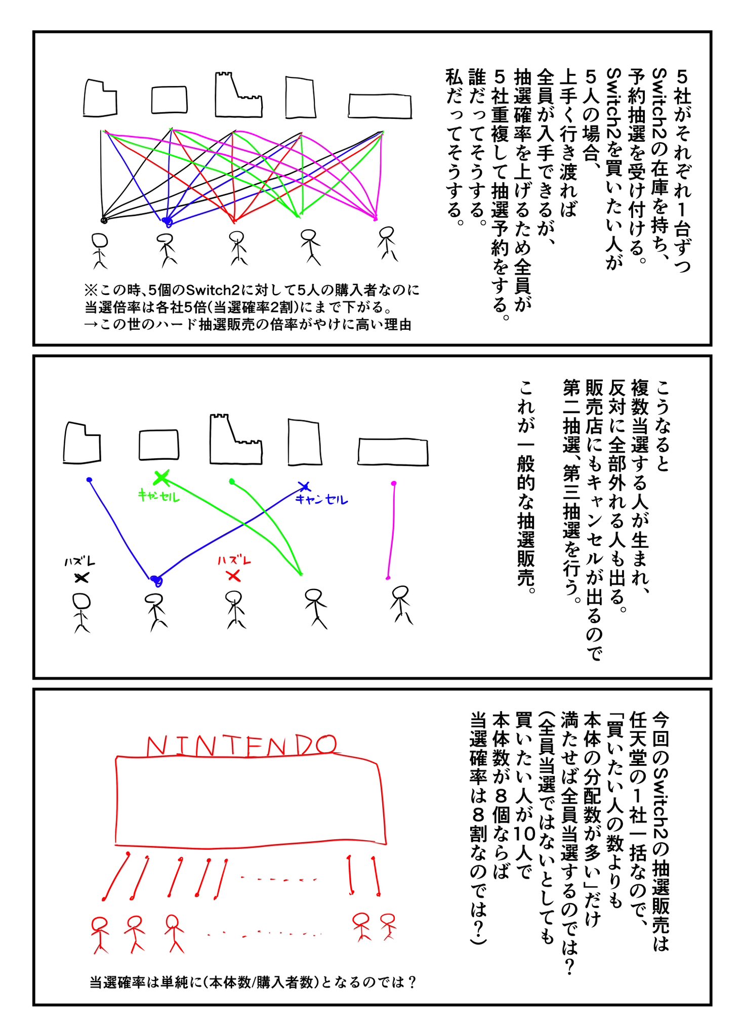 任天堂はかなり用意しているから1回目の抽選者は条件を満たす人数分は基本全員分あって重複した住所や怪しい所在の人間などは弾かれると思ってる