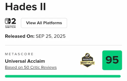 インディだから点数甘めに付いてるけど前作をブラッシュアップさせただけのHades2がGOTYに相応しいとは思えない