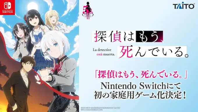 タイトーは、ライトノベル「探偵はもう、死んでいる。」のアニメ化5周年を記念し、同作初の家庭用ゲーム「探偵はもう、死んでいる。」をNintendo Switch向けに発売することを明らかにした。発売日、価格は未定。「探偵はもう、死んでいる。」は、二語十(にごじゅう)氏(作)とうみぼうず氏(イラスト)によるKADOKAWA刊MF文庫Jのライトノベル。7月にTVアニメ第2期の放送も予定されている。