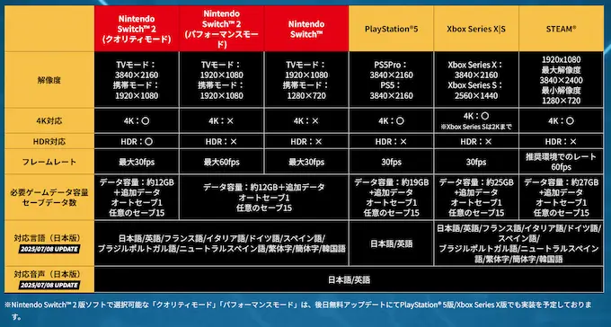 Switch版をSwitch2でプレイする人向けにSwitch版をSwitch2版相当にする無料アップデートも配信されるらしい