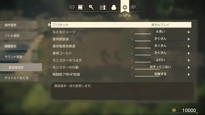 経験値・職業ポイント・ゴールド量は調整できるけど、根っこのヌルさは変えにくい。