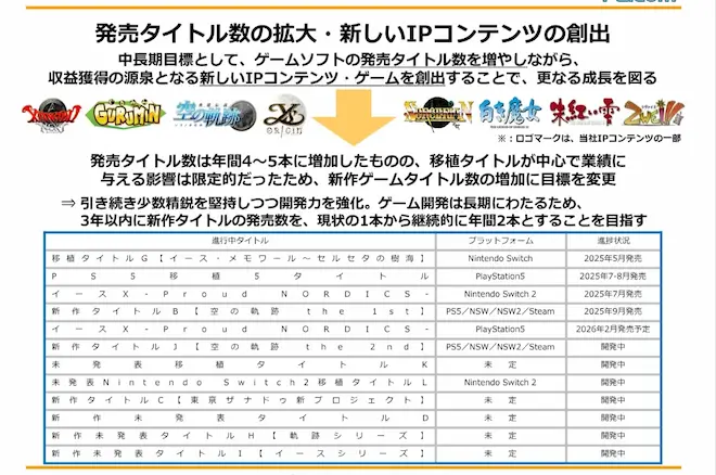 昨日の事業計画資料で新作、移植が明示されててリメイクは新作扱いなので今期は2ndと京都ザナドゥで確定