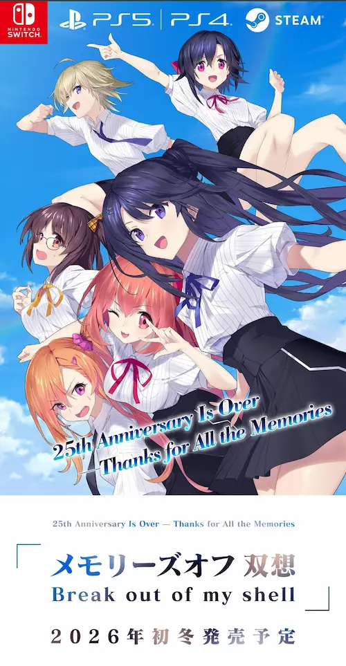 『メモリーズオフ 双想 Break out of my shell』のティザーサイトを公開し情報を更新しました。