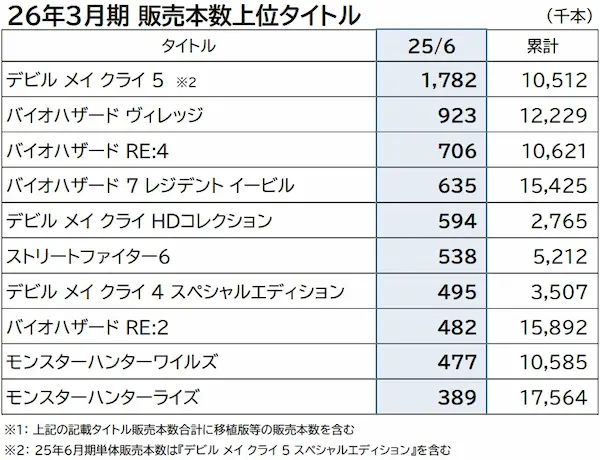 デビルメイクライ5も1000万本余裕で超えてくるし・・・