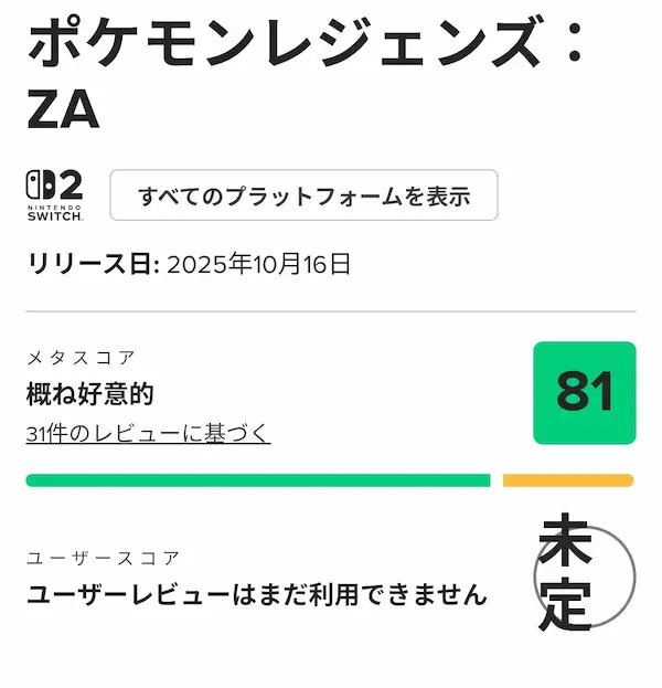 ポケモンくらい広く売れてるIPなら大半の購買者はメタスコア何ぞ知らないし興味もないと思う