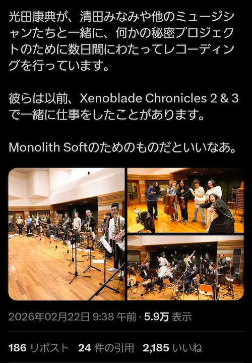 ケイトリン・ソーバーン(KOS-MOSとNim in 2)は、スポットライトページを更新し、2026年に発売予定のゼノブレイドのゲームに携わったことを明かした。
