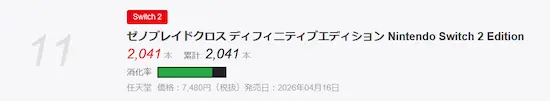 ゼノブレは3も初動以降全く売れなかったしもうシリーズの力も無いのかね