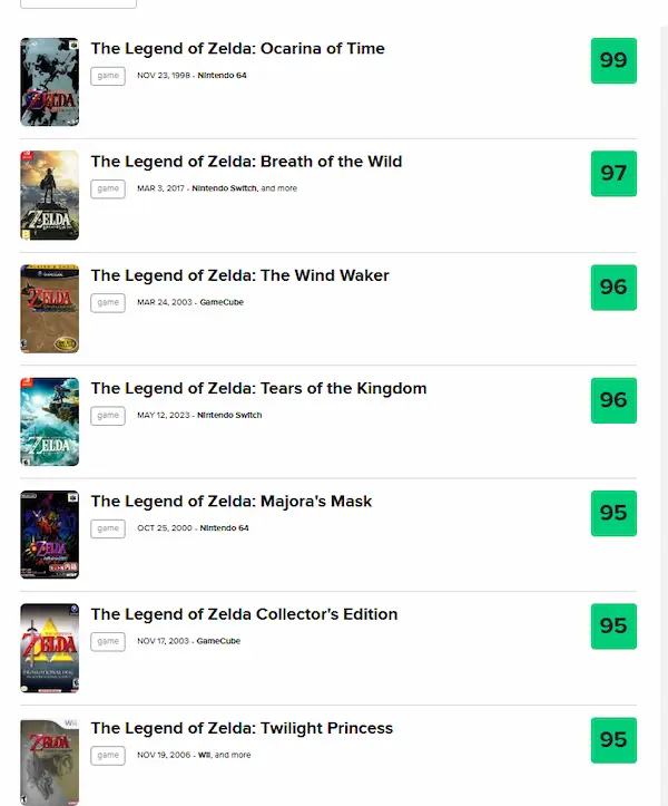 メタスコアは3Dゼルダが高いんだね