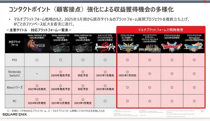 結局面白いソフト作らないとSwitch2でも売れないぞ。ちゃんと作ればSteamでもPSでも売れるのにそれが出来てないのがスクエニ。カプコンやフロムとの違い。
