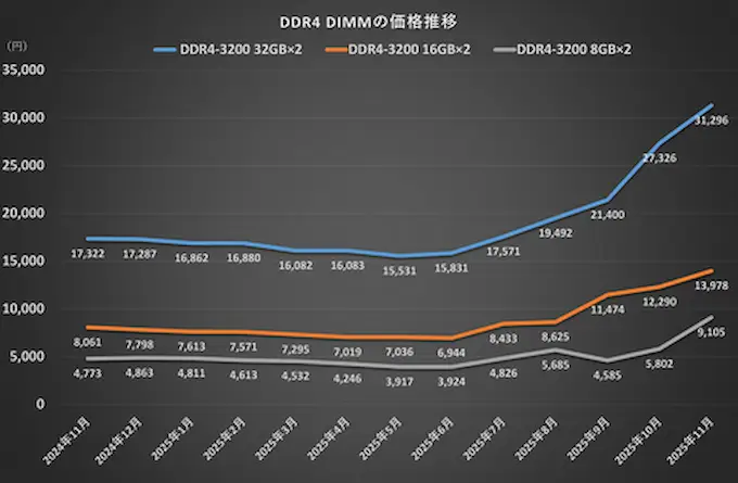 メモリが洒落にならんほど目ん玉飛び出る値上がりしてるため