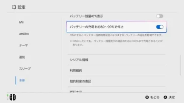 投稿では「Nintendo Switch 2 は「バッテリーの充電を約80~90%で停止」を「ON」にすることで、バッテリーの劣化を遅らせることができます。」と説明されています。この設定は、「設定」から「本体」の項目を選択することで変更が可能となっています。